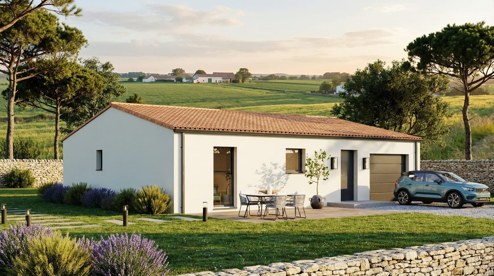 *Prix total se décomposant ente un prix terrain et un prix de construction, communiqué à titre indicatif et susceptible de modifications. La Société Maisons Privat n’est pas mandaté pour réaliser la vente du terrain.Sauf mentions express dans l’annonce, le prix indiqué s’entend avec installation de chauffage par pompe à chaleur et chape sur toute la surface habitable de la construction mais hors frais de notaire et coûts éventuels de viabilisation pour le terrain. Le prix tient également compte d'une construction sur un terrain réputé plat et de portance minimum de 2kg/cm². La société Maisons Privat s’efforce d’assurer une mise à jour régulière de ses annonces. Elle ne peut cependant être tenue pour responsable d’un éventuel défaut de mise à jour d’une quelconque de ces annonces. Visuels non contractuels. Les informations sur les risques auxquels ce terrain est exposé sont disponibles sur le site Géorisques (www.georisques.gouv.fr). Pour les gammes Evolutys (Evoly et Equaly) et Focus (Lyra, Syrius,Capella et Althéa), les prix sont hors raccordement, hors revetements de sols et murs et hors équipements sanitaires qui peuvent être rajoutés lors de la mise au point.
