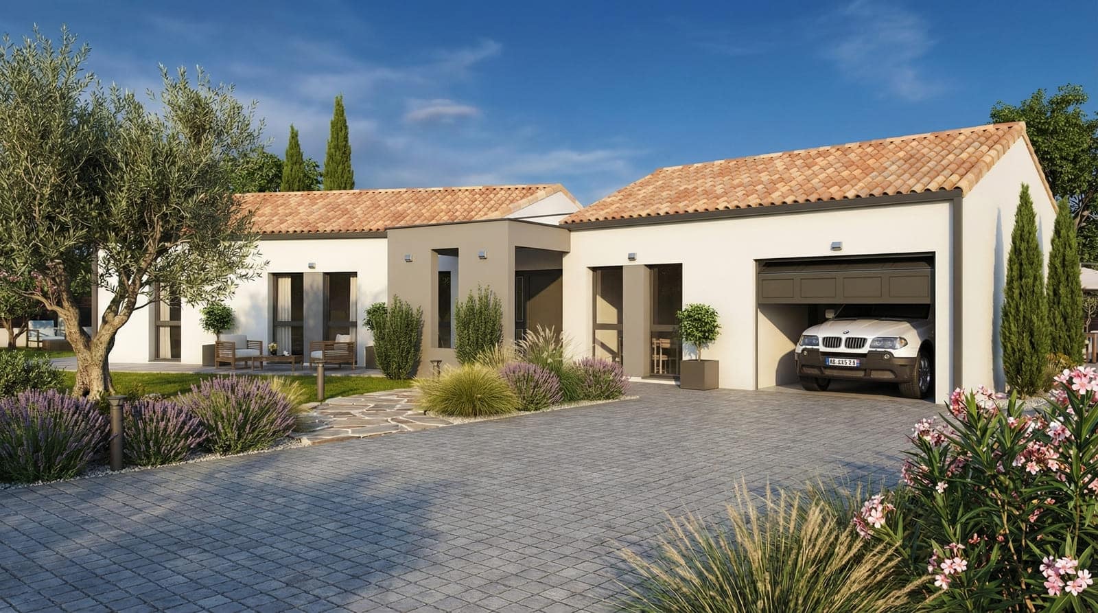 Sur ce terrain, nous vous proposons cette maison neuve : Vertium, une maison contemporaine qui peut voir très grand. Déclinable en quatre versions, sur des surfaces comprises entre 85 et 125 m², le modèle Vertium est une maison contemporaine de plain-pied qui offre une multitude de choix pour s’adapter aux différents modes de vie et compositions familiales.