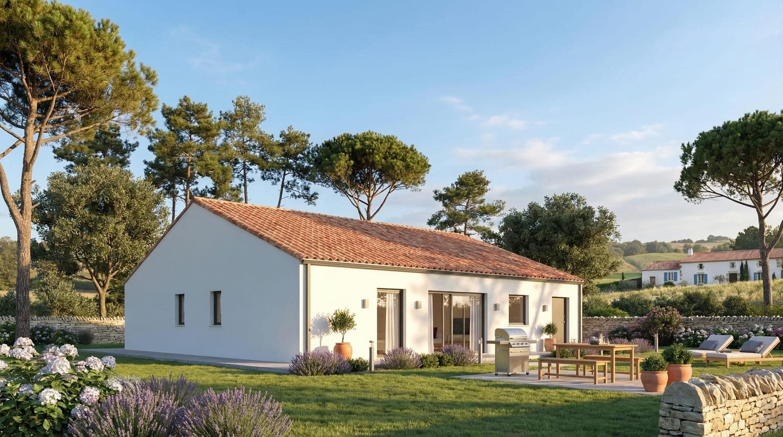 Sur ce terrain, nous vous proposons cette maison neuve : l’Aixoise, un coquet pavillon familial de plain-pied. Disponible en T3 sur une superficie de 80 m², l’Aixoise est une jolie maison traditionnelle qui saura répondre à toutes vos attentes.